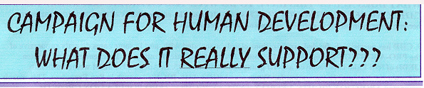 A CLOSE LOOK AT CAMPAIGN FOR HUMAN DEVELOPMENT (CHD) RECIPIENT GROUPS PAINTS A DISTURBING PICTURE 1. Catholic parishioners are donating millions of dollars to fringe groups that place political organizing above charity. 2. The logical assumption is that this collection goes to aid the work of people like Mother Teresa and her nuns; or any of the countless thousands of other Catholic charitable organizations throughout the country that help unwed mothers, feed the poor etc. BUT THAT'S NOT WHERE THE GRANTS FROM THE CHD GO !!! 3. The American Bishops claim they do not allow political endorsements of candidates. However, the CHD has evolved into little more than an organizing arm of the Democratic Party, which for 28 years now has poured money into grass-roots political action organizations. One such organization in Tucson, is PCIC. (Pima County Interfaith Council). 4. CHD in the Diocese of Tucson supports the PCIC as a "New Evangelization" to: Register voters, hold sessions to teach people who and what to vote for and to support a massive extension of governmental interference in the lives of families and communities under a religious guise. 5. PCIC successfully led a ballot initiative for Prop. 203, the Healthy Arizona Initiative, which would provide 150,000 people with health care. This initiative was also supported by solidly PRO-ABORTION ORGANIZATIONS SUCH AS PLANNED PARENTHOOD AND THE NATIONAL ORGANIZATION FOR WOMEN because of its increased funding for teenage pregnancy prevention programs. 6. CHD in the Diocese of Tucson funds Saul Alinsky's Industrial Areas Foundation (IAF). The late Mr. Alinsky was a professional agitator whose job it was to teach people to create "SOCIAL CHAOS " to get what they want from government. 7. Saul Alinsky was a religious agnostic who set out to change the basic attitudes and structure of the Catholic Church in America. His book, RULES FOR RADICALS, has become the bible for organizing political leftist activities. Given the amount of Catholic money which goes through CHD to organizations started by Saul Alinsky, or which subscribe to his tactics, it is ironic that his opening quote acknowledges his regard for the world's "firstradical": "Lest we forget at least an over-the-shoulder acknowledgment to the very first radical: from all our legends, mythology, and history (and who is to know where mythology leaves off and history begins or which is which), the first radical known to man who rebelled against the establishment and did it so effectively that he at least won his own kingdom - LUCIFER." 8. CHD maintains that it EMPOWERS the poor "to move beyond poverty". Critics maintain that CHD supports precisely those failed dependency-inducing programs that have led to the decimation of inner-city families. WHAT DOES ALL OF THIS HAVE TO DO WITH THE CATHOLIC CHURCH!!! -The CATHECISM OF THE CATHOLIC CHURCH states "it is not the responsibility of the Church's Pastors to become directly involved in political action and social action". 9. CHD has persistently funded organizations closely associated with, and in some cases directly supportive of the PRO-ABORTION movement. For Example: Justice, Economic Dignity and Independence for Women (JEDI) of Salt Lake City received a CHD grant of $20,000 in 1995. In April, 1996 JEDI women officially endorsed the National Organization for Women's "FIGHT THE RIGHT" march in San Francisco. This march supported ABORTION RIGHTS, LESBIAN AND GAY RIGHTS, ZERO POPULATION GROWTH, REPRODUCTIVE FREEDOM AND AFFIRMATIVE ACTION. 10. CHD supports the Farms Labor Organizing Committee(FLOC). This committee works with Women's Environment and Development Organization (WEDO). WEDO is a radical supporter of ABORTION AND POPULATION CONTROL PLANS. 11. CHD betrays a trust in accepting money from loyal but unsuspecting parishioners to use for projects that most Catholics would not otherwise support.7 12. Worthy charities are supported by our HOLY FATHER, JOHN PAUL II. We suggest you may want to consider sending your donations directly to the HOLY FATHER, where you can be sure it will be used to help the poor and needy. His address is: HIS HOLINESS, JOHN PAUL II |